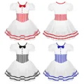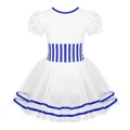 Limited Price Girls Christmas Dance Costume Short Lace Puff Sleeves Striped Printed Waist Figure Ice Skating Roll with Free Shipping Worldwide!